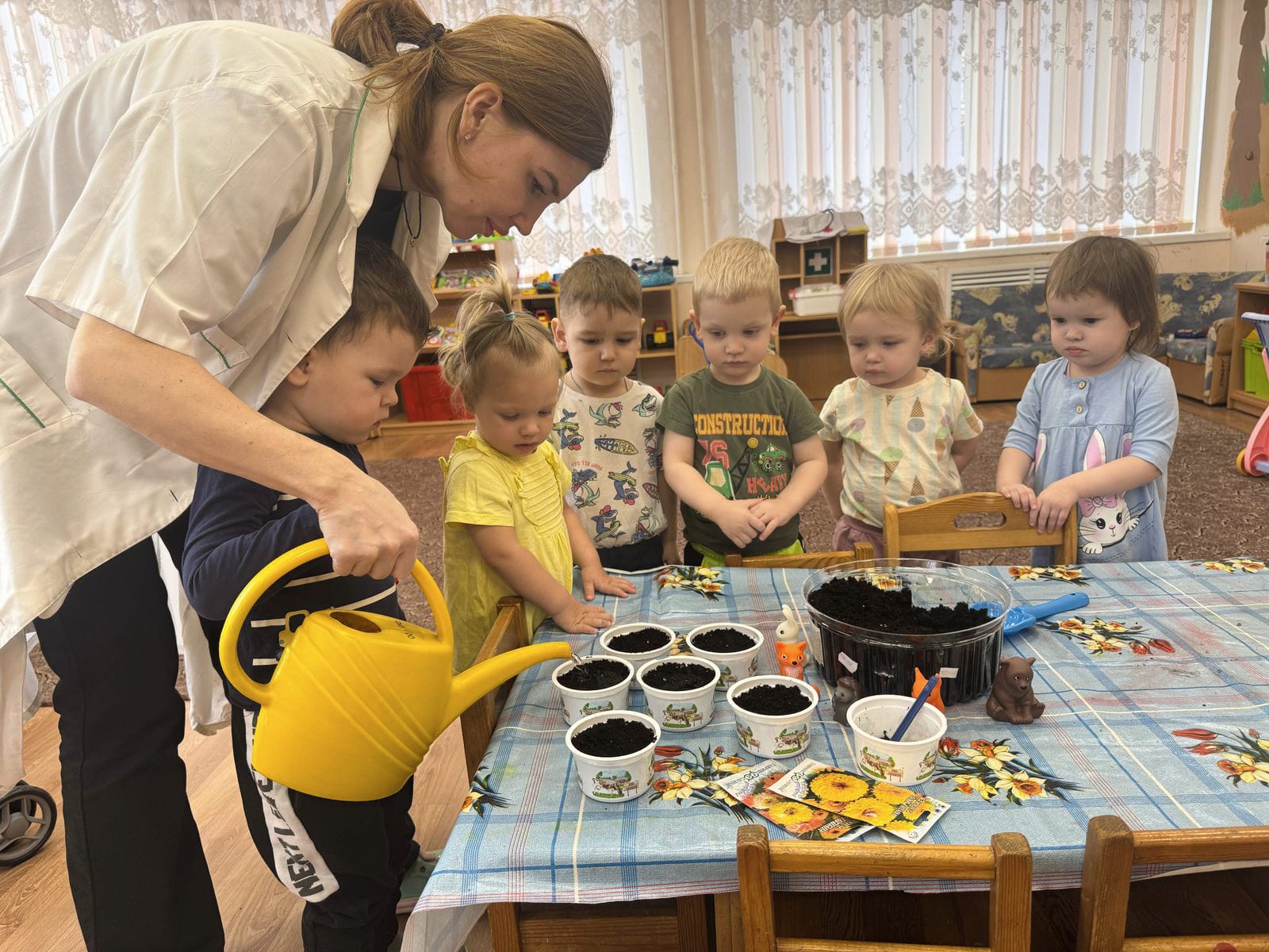Малыши из 13 группы "Солнышко" впервые посадили семена цветов, с удовольствием учатся ухаживать за ними.
