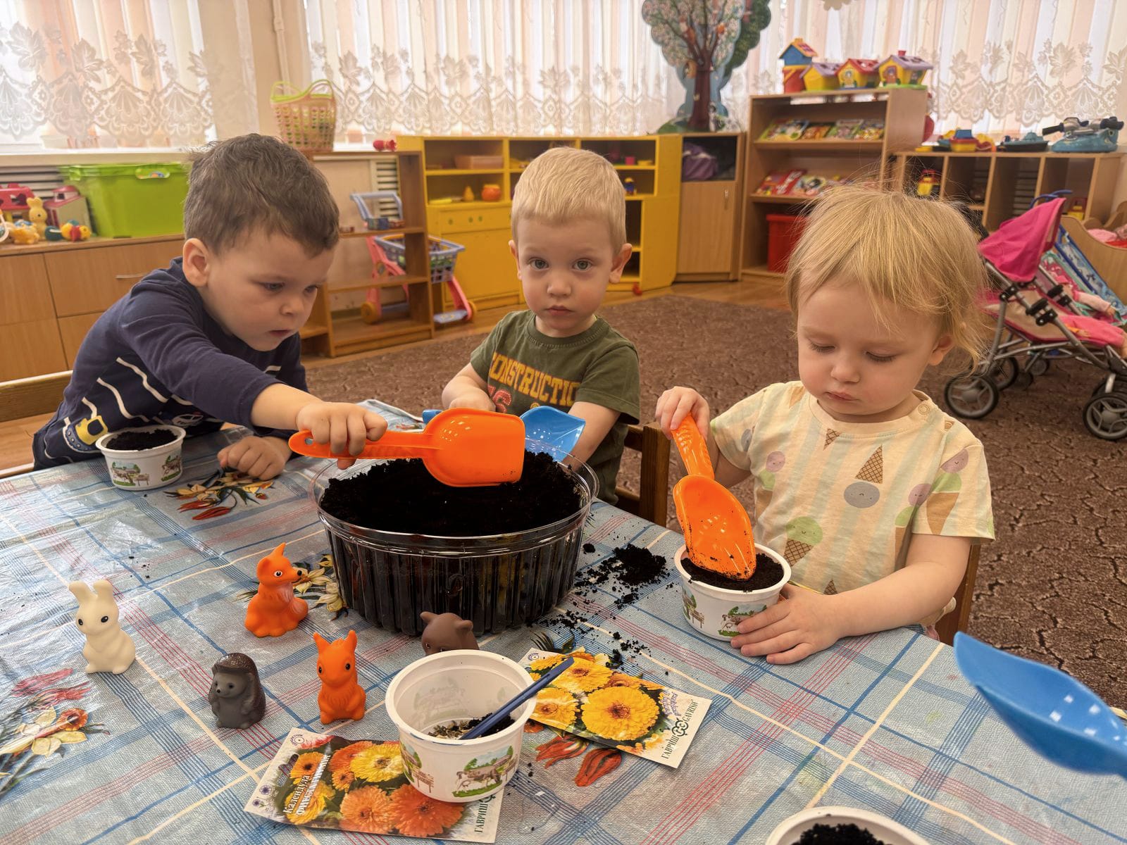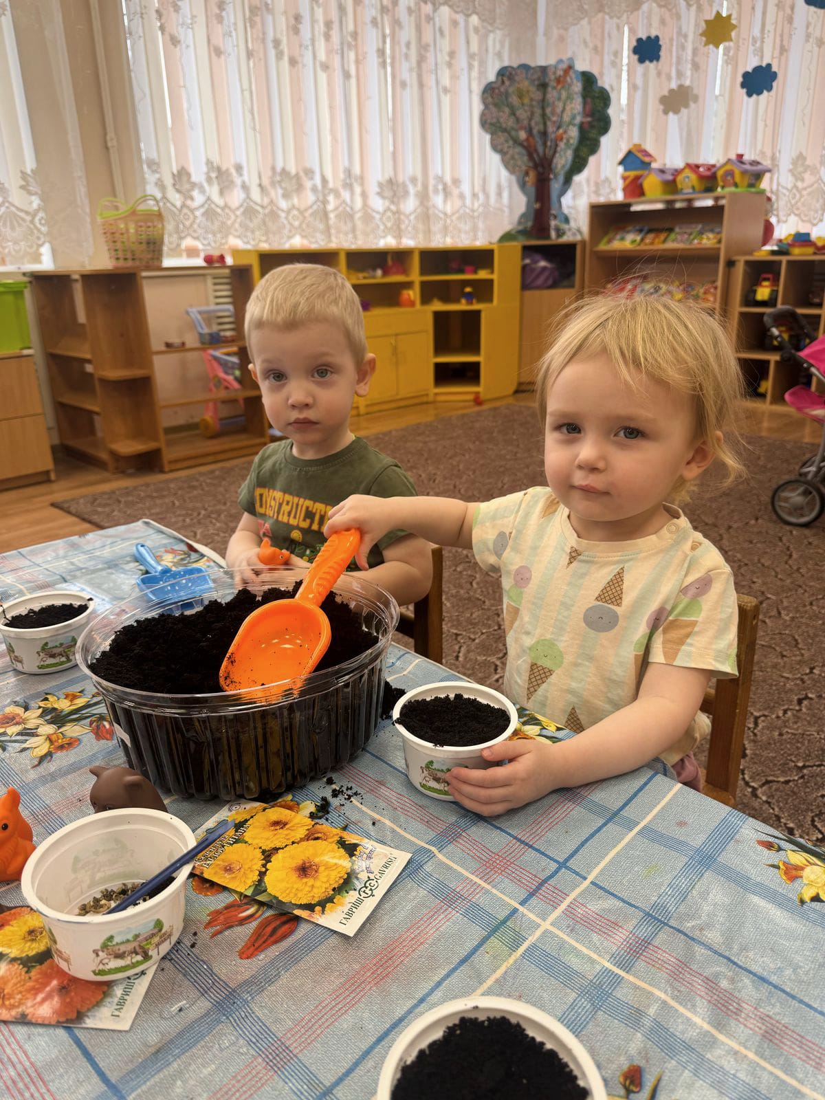 В этот знаковый день 12 марта ребята из 19"Капельки" группы поспешили посеять семена своих любимых цветов.