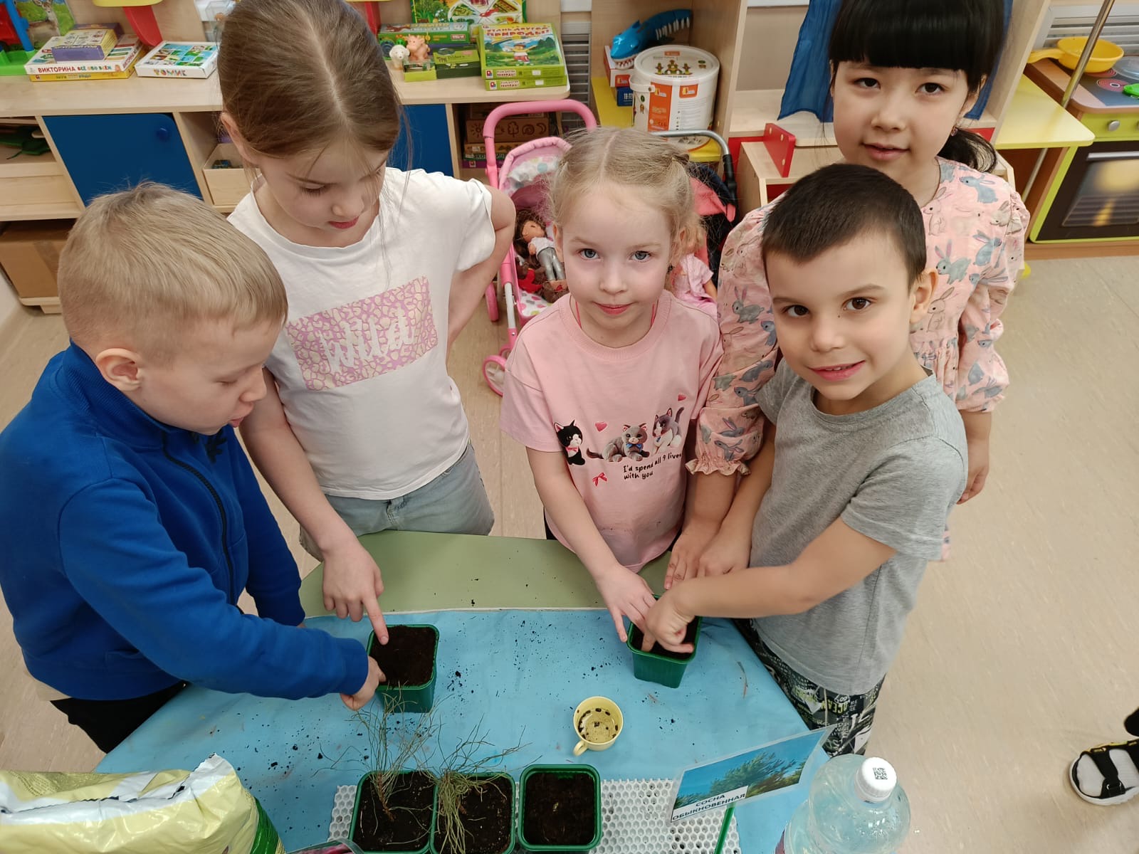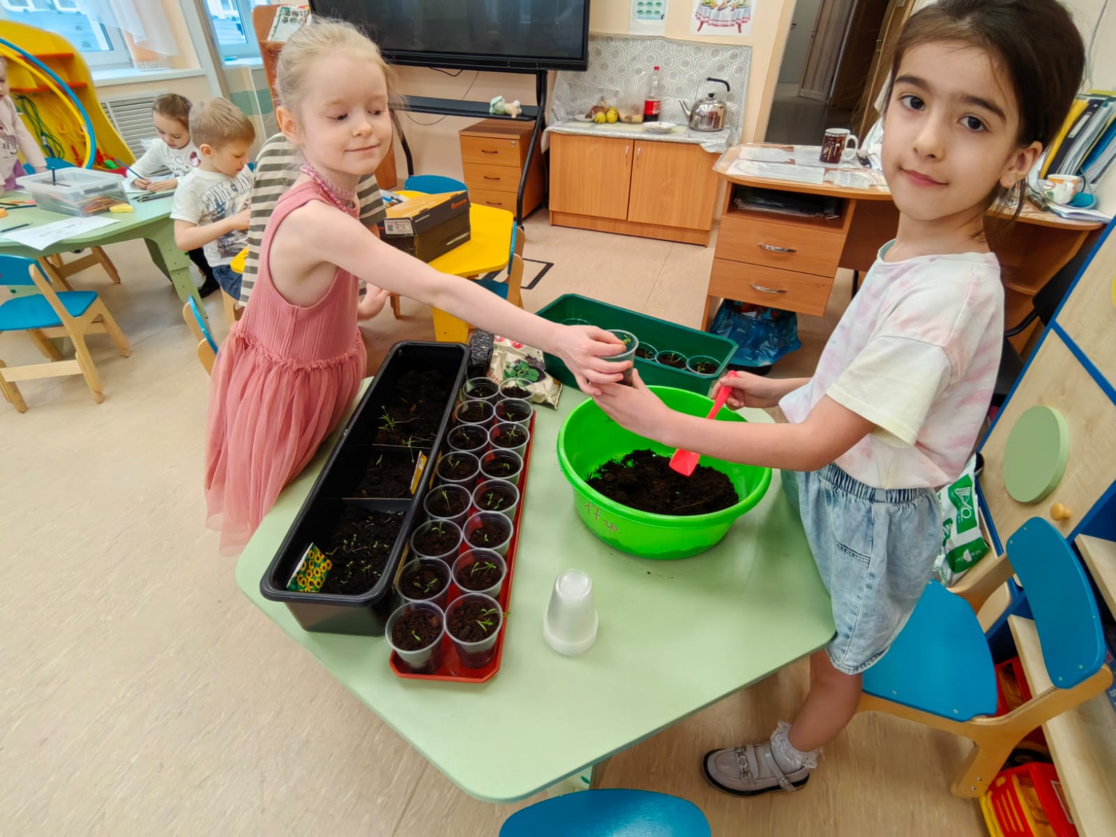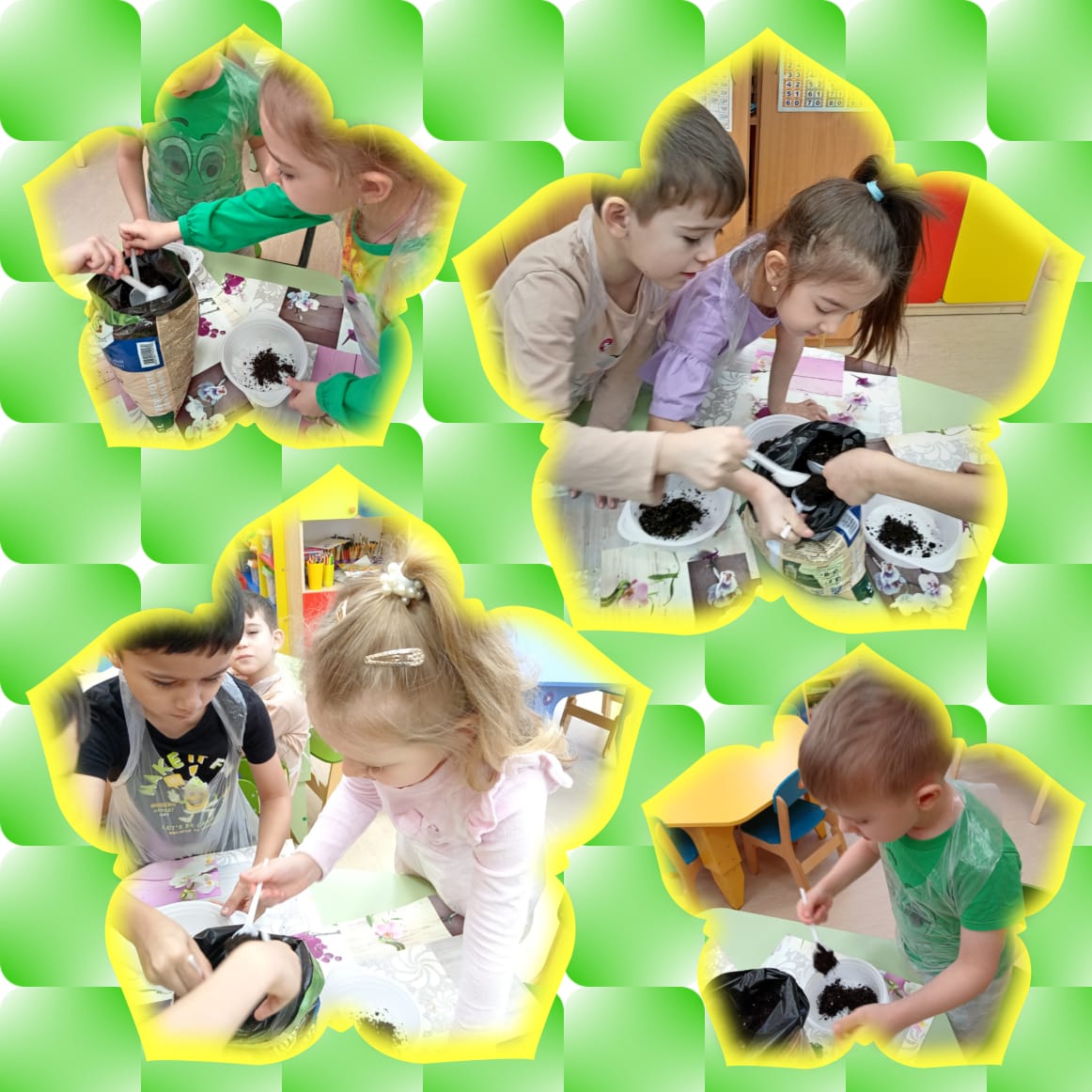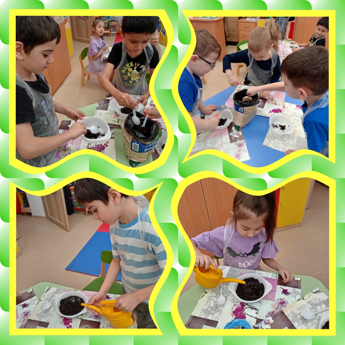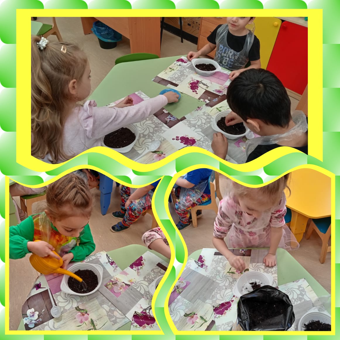 10 группа посадили свои жёлтые цветочки и теперь с нетерпением ждут ,что у них вырастет.