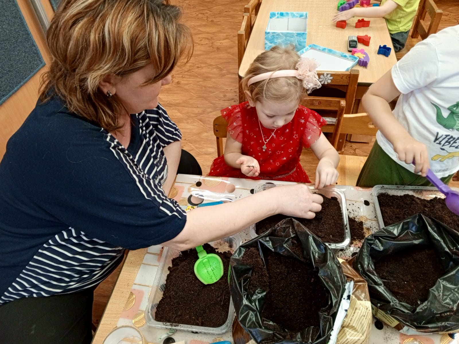 Детки из 12 группы "Непоседы" познают секреты цветоводства.